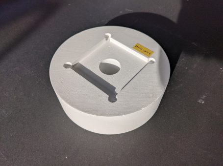 写真の製品はルミボードL-14ZをNC旋盤で切削加工したもので、ヒーター用断熱材・耐熱材として使用されます。