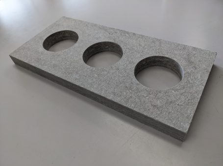 写真の製品はヘミサル15をマシニングセンターで切削加工したもので、FRP成形金型用断熱板として使用されます。