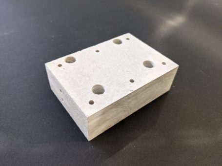 写真の製品はヘミサル15をマシニングセンターで切削加工したもので、樹脂成形機用断熱板として使用されます。