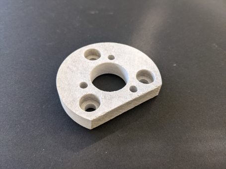 写真の製品はヘミサル15をNC旋盤で切削加工したもので、加熱プレス用断熱板として使用されます。