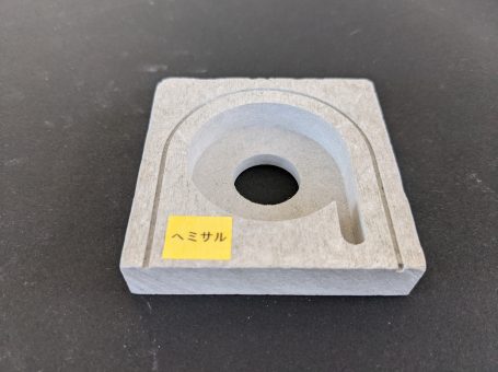 写真の製品はヘミサル15をマシニングセンターで切削加工したもので、電気炉用断熱材として使用されます。